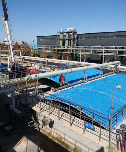 用于污水池和氧化溝的密封,防止臭氣散發(fā)。在蓋板上設(shè)排氣口,將臭氣用管道引出至除臭設(shè)備。